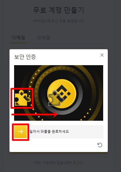 맨하단 계정만들기를 클릭하면 퍼즐 맞추기가 뜹니다.
