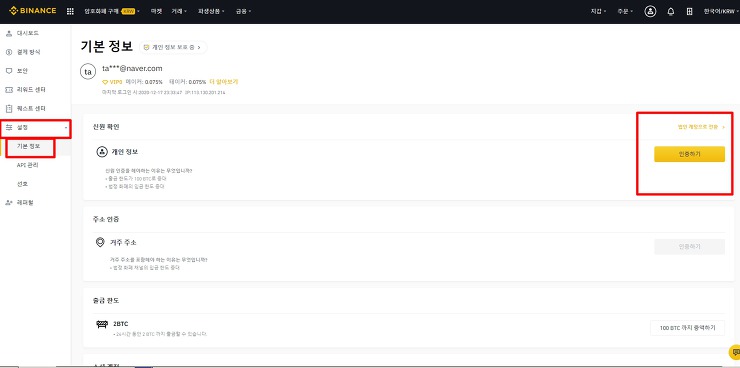 바이낸스 신원인증 방법, 출금 한도 늘리기