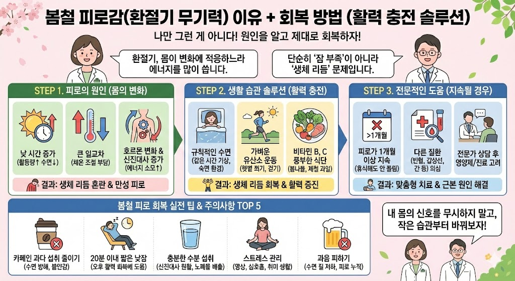 봄철 피로감 이유 + 회복 방법 (환절기 무기력, 춘곤증 진짜 원인)