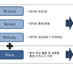 빅데이터 빅 데이터(big data)란 기존 데이터베이스 관리도구의 능력을 넘어서는 대량(수십 테라바이트)의 정형 또는 심지어 데이터베이스 형태가 아닌 비정형의 데이터 집합조차 포함한[1] 데이터로부터 가치를 추출하고 결과를 분석하는 기술이다. 우리는 흔히 빅데이터를 4V 라고 정의한다. 3V + 1V Volume(크기): Petabyte of data Velocity (속도): Real time data Streams Variety(다양성): Difference form of data - 정형데이터, 비정형데이터, 로그데이터 등 Value(가치) - 단순히 많은 양의 데이터가 아니라 가치 있는 데이터가 중요 빅데이터 처리 과정 수집: 엑셀, 웹 크롤링, 로그 파일, SNS, IOT 등을 이용해서 데이터..